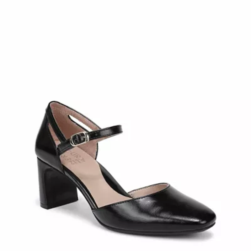 A modern take on the Mary Jane pump, this dress shoe features chic cutouts for a desk-to-dinner statement. Balanced on an architectural heel and finished with our signature Contour+ Comfort technology, feel confident on your feet from 9-5 and 5-9. MATERIALS: Faux leather upper. Synthetic lining and insole. FEATURES: Adjustable ankle strap, closed back with cutout details, sculpted architectural heel. COMFORT: Extra cushioning, enhanced flexibility, shock absorption. HEEL HEIGHT: 2.50 inch. TOE: Snip toe. Padded insole Vietnam Imported Product Specifications 2.5 in. M Material SYNTHETIC, LIGHT TPR, Polyurethane polyurethane