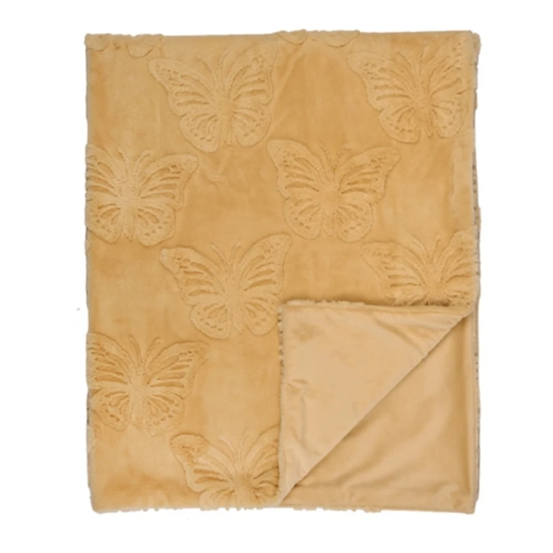 Embellish your space with the cute, textured pattern of this Yellow Dimensional Butterfly Throw. Boasting a monochrome style in sunny yellow, it will be a bright spot in any interior! Throw measures 50L x 60H in. Crafted of polyester Plush texture 3D butterfly design Hues of yellow Care: Machine wash. Contact your local Kirkland's store for availability. Quantities and selection may vary by location.