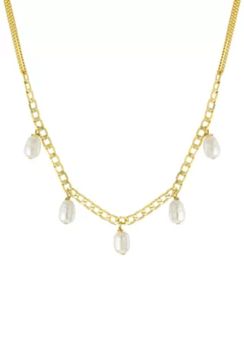 Freshwater pearls lend elegance to this necklace from Belk Silverworks that's made from yellow gold fine silver-plated metal and enhanced with a polished finish. 5 Freshwater Pearls Spring ring clasp Polished finish Imported Belk Exclusive Product Specifications 16 in Length + 2 in extender Material & Care Yellow gold fine silver-plated metal Clean with a soft cloth