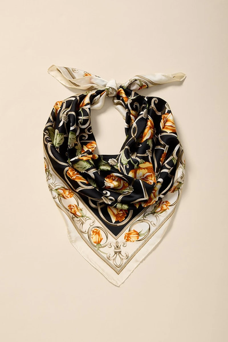 Yellow Rose Print Satin Scarf