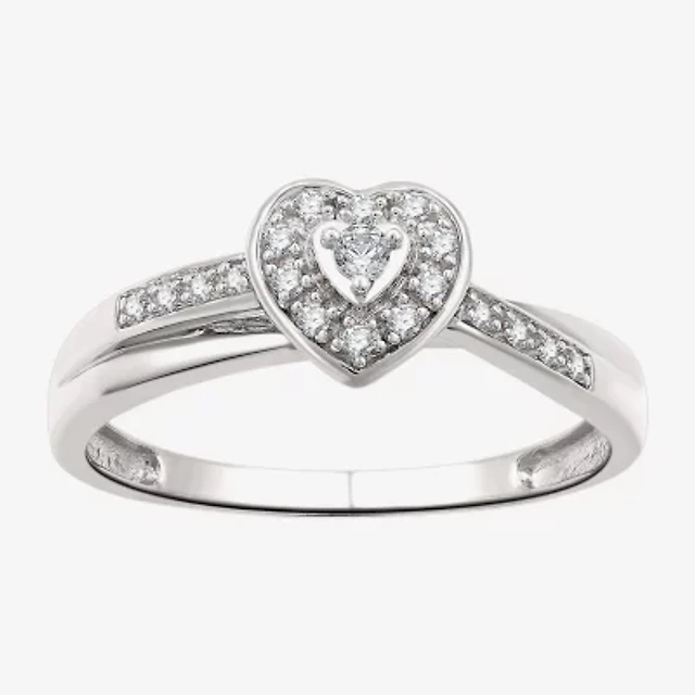 Yes, Please! Womens 1/10 CT. T.W. Lab Grown White Diamond Sterling Silver Heart Halo Side Stone Cocktail Ring