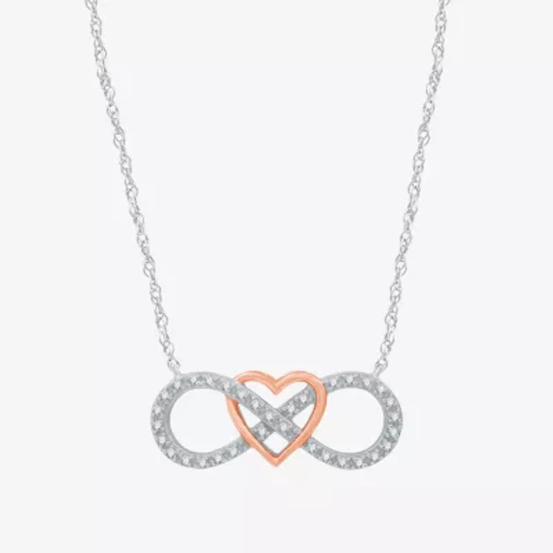 Yes, Please! Womens 1/10 CT. T.W. Natural Diamond 14K Rose Gold Over Silver Heart Infinity 16 1/2 Inch Pendant Necklace