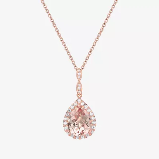 Yes, Please! Womens Lab Created Pink Sapphire 14K Rose Gold Over Silver Pear 18 Inch Pendant Necklace