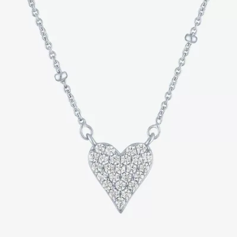 Yes, Please! Womens Lab Created White Sapphire Sterling Silver Heart 16 Inch Pendant Necklace