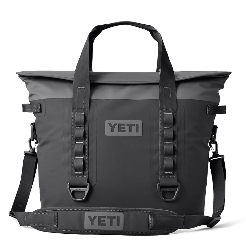 The Hopper® M30 Soft Cooler is YETI's tough-as-nails soft cooler that can carry 42 cans (only) of your favorite beverage (or 32 pounds of ice). Their signature wide-mouth opening has been reengineered to stay open with ease and close tight with a gentle push. A strip of ultra-strong magnets locks in cold while Quick-Release Buckles provide extra security through choppy water or when riding through rough terrain in the bed of a truck.