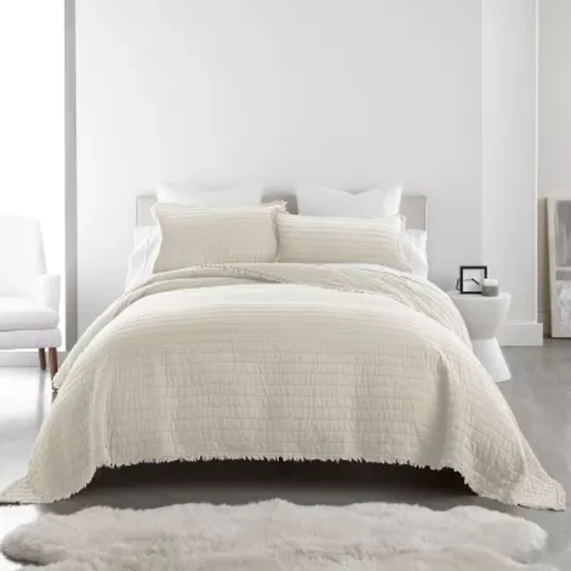 The Delano quilt collection from Donna Sharp is made from stone washed cotton in peaceful tones of gray, ivory, or blush. Simple straight-line quilting and ragged edges add a casual, yet contemporary feel to your d�cor. Stone washing increases the comfort and softness, while preventing shrinkage and wrinkles. The easy-care cotton fabric makes this collection perfect for any season, keeping you cool or warm.