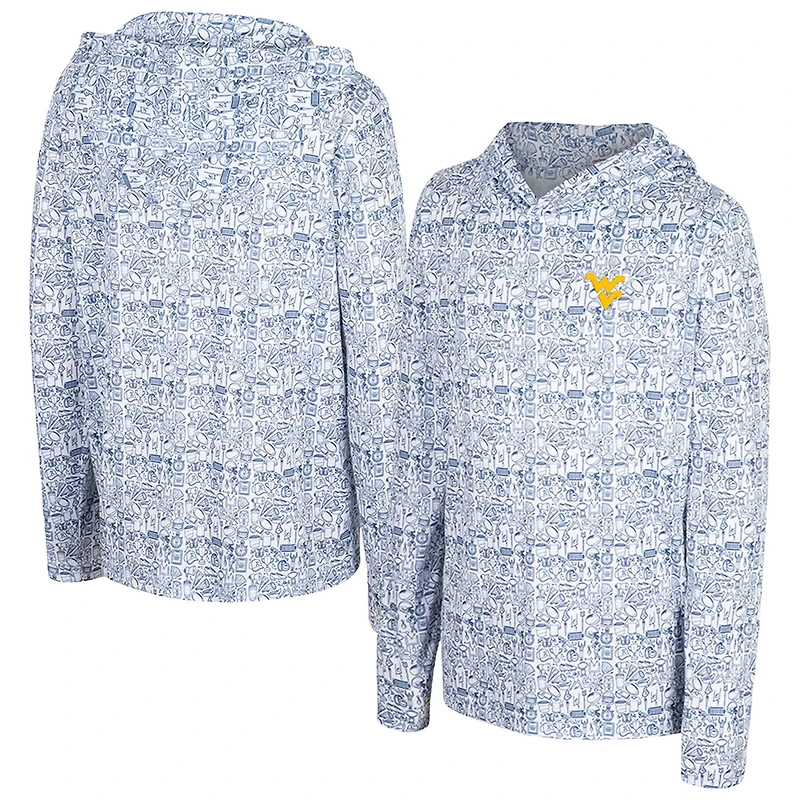 Wrap your young fan in cozy West Virginia Mountaineers spirit with this All-Over Print Hoodie from Colosseum This lightweight hoodie is perfect for mild temperatures offering cozy comfort without the bulk The sublimated all-over print adds a touch of West Virginia Mountaineers pride while the embroidered team logo on the left chest provides a classic touch