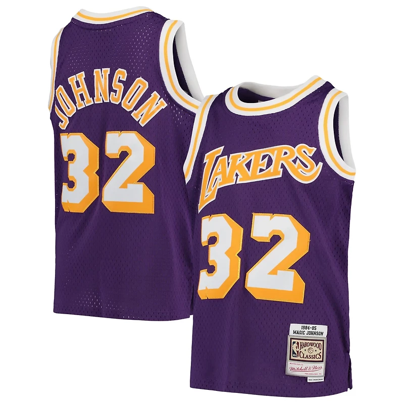Youth Mitchell Ness Magic Johnson Los Angeles Lakers 1984-85 Hardwood Classics Swingman Throwback Jersey