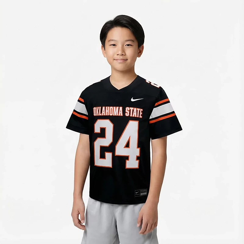 Get your young fan ready to cheer on the Oklahoma State Cowboys with this 24 Untouchable Football Jersey from Nike This Oklahoma State Cowboys jersey features heat-sealed graphics to showcase your fandom while the stitched fabric applique at the collar adds a premium touch Its loose fit and lightweight polyester construction make it incredibly comfortable to wear
