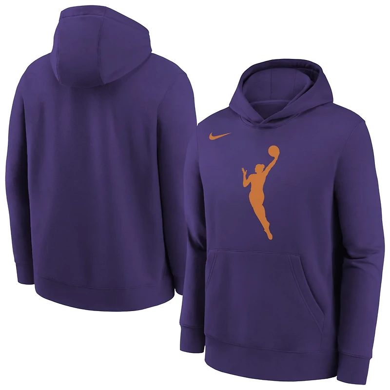 Help your youngster gear up with a bold declaration of their love for the WNBA by grabbing this Essential Team hoodie from Nike It features the league's silhouette logo printed across the torso along with a tasteful single-color design With this pullover in their wardrobe your kiddo will be more than ready to layer up when cooler temperatures arrive and rally behind their squad in full spirit