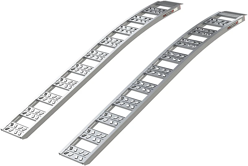 Load ATV, riding lawn mowers and more with the Yutrax 90 in Arched Ramps. The arched design helps prevent bottoming out, while the wide-rung design allows for smooth loading. The ramps are made of extruded aluminum for durability, and they have an embossed rung design for traction when loading and unloading.