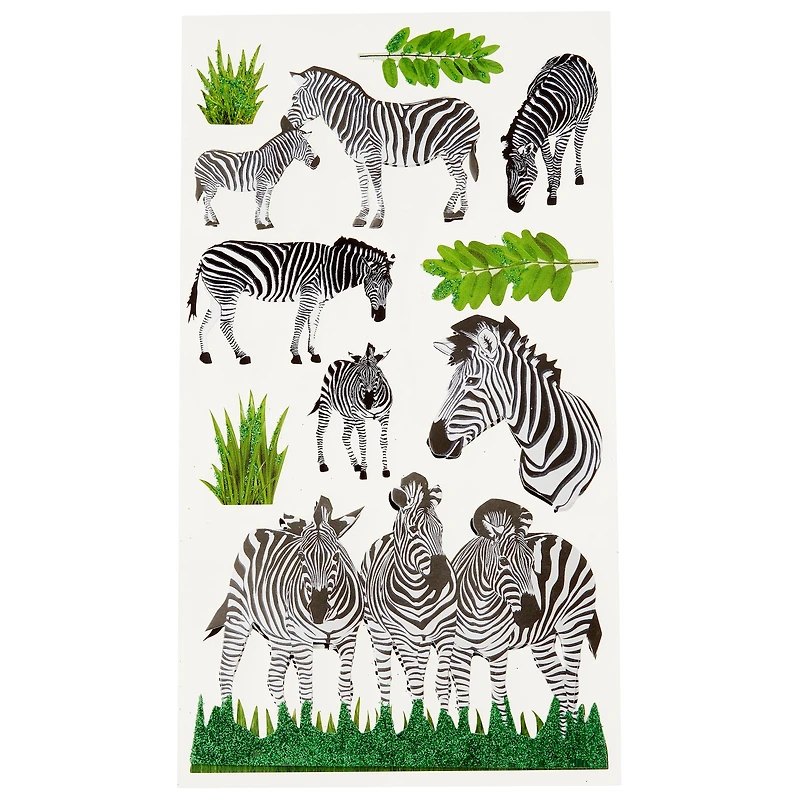 Embellish your DIY cards and scrapbook pages with these zebra stickers. These stickers can be used to accent photographs, memories and more.