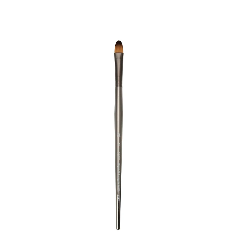 With its soft rounded edges, the Royal and Langnickel Zen filbert brush is suitable for figurative work. Replicating natural hair, the premium synthetic bristles of this brush offer great absorbency and versatility as you blend colors. Take care of the finer details in your paintings with ease, as this paintbrush is provided with a short handle. The premium synthetic bristles and acrylic handle of the brush ensure easy cleaning and durability.Details: Available in multiple sizes Series 73 Synthetic filament, multi-diameter hair Anodized aluminum ferrule Silver acrylic short handle For use with acrylic, oil and watercolor