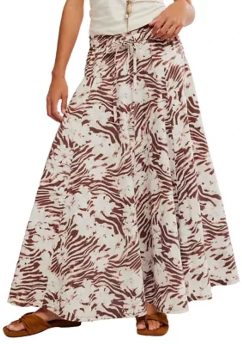 Free-spirited and endlessly versatile, the Zephyr skirt from Free People is designed to transform with your look. Featuring a flowing maxi silhouette with an adjustable detail, it effortlessly converts from a full-length skirt to a playful bustle style. Finished with an allover print for a bohemian touch, this statement piece is perfect for styling multiple ways—whether worn long and relaxed or cinched up for added movement and flair. Elastic waistband Lined Imported Product Specifications 41" L Material & Care 100% cotton Machine washable