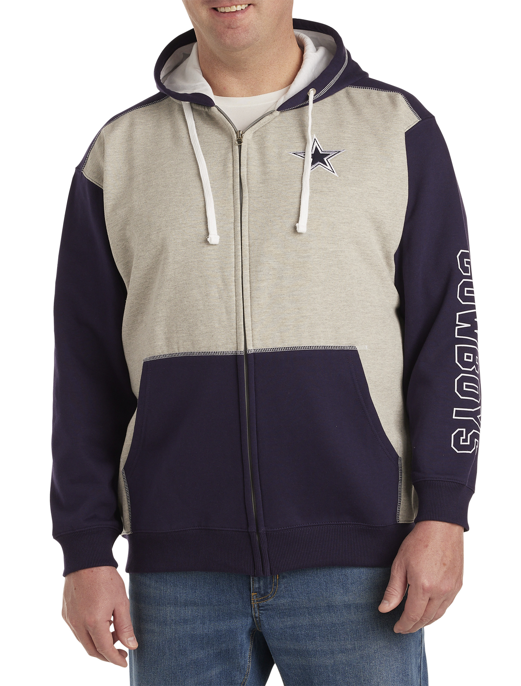 Layer on the team spirit with this cozy fleece hoodie. Offering soft, lightweight warmth without being too bulky, it's designed with a roomy fit that layers comfortably over your favorite team tees. The zip-front style is easy to slip on and off as soon as the weather changes. The colorblocked details add eye-catching interest and the signature screenprinted team logo at the left chest lets fellow football fans know who you're rooting for. The pouch pocket in front can also keep your hands warm between high-fives!