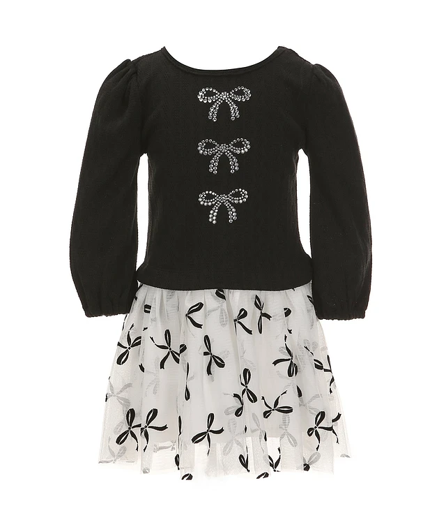 Zunie Little Girls 2-6X Long-Sleeve Knit Bodice/Mesh Tutu-Skirted Dress