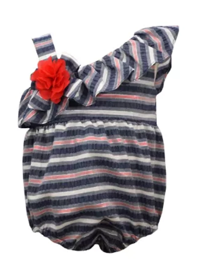 Baby Girls Seersucker Cross Ruffle Bodice Top and Shorts Set