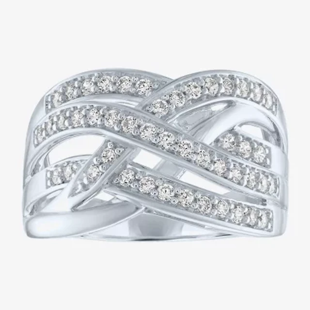 Womens 1 CT. T.W. Natural Diamond Sterling Silver Bypass Cocktail Ring