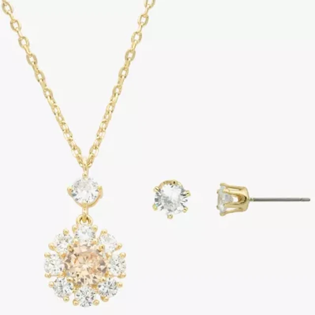 Sparkle Allure Womens Cubic Zirconia 14K Gold Over Brass Round Sunburst 2-pc. Jewelry Set