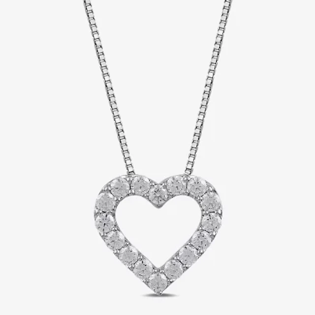 I1-I2/G-H) Womens 1/2 CT. T.W. Lab Grown White Diamond 10K White Gold Heart 18 Inch Pendant Necklace