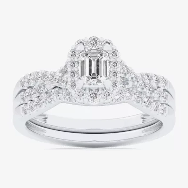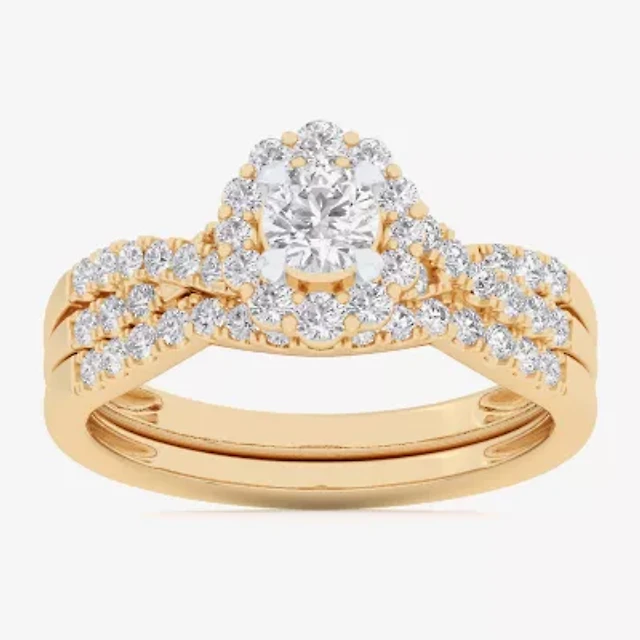 Signature By Modern Bride (G-H / Si1-Si2) Womens 1 1/3 CT. T.W. Lab Grown White Diamond 10K Gold Oval Side Stone Halo Bridal Set