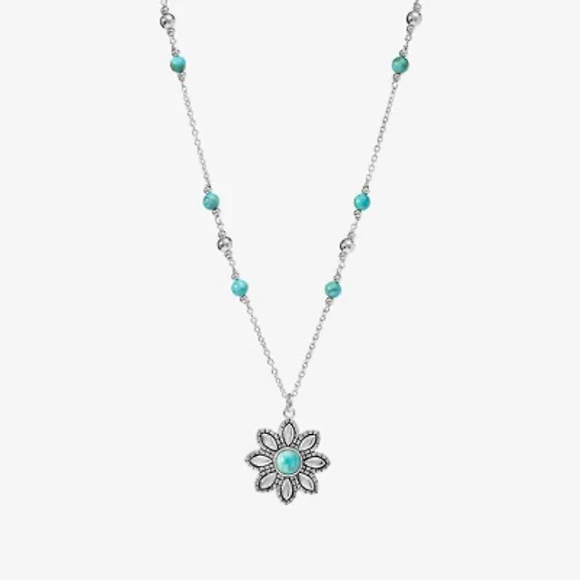 Womens Genuine Black Onyx Sterling Silver Flower 18 Inch Pendant Necklace