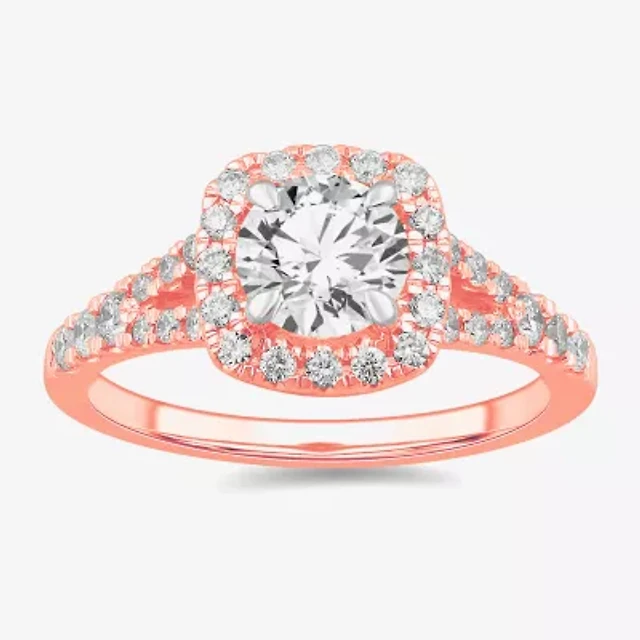 Womens 1 1/2 CT. T.W. Lab Grown White Diamond 14K Gold Over Silver Cushion Halo Side Stone Cocktail Ring