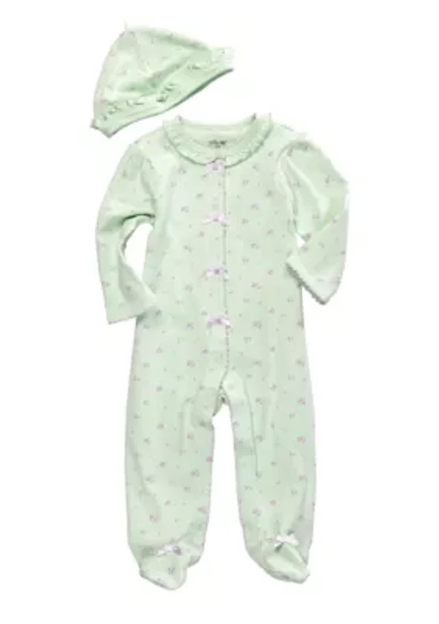 Baby Girls Button Front Cardigan and Printed Leggings Set