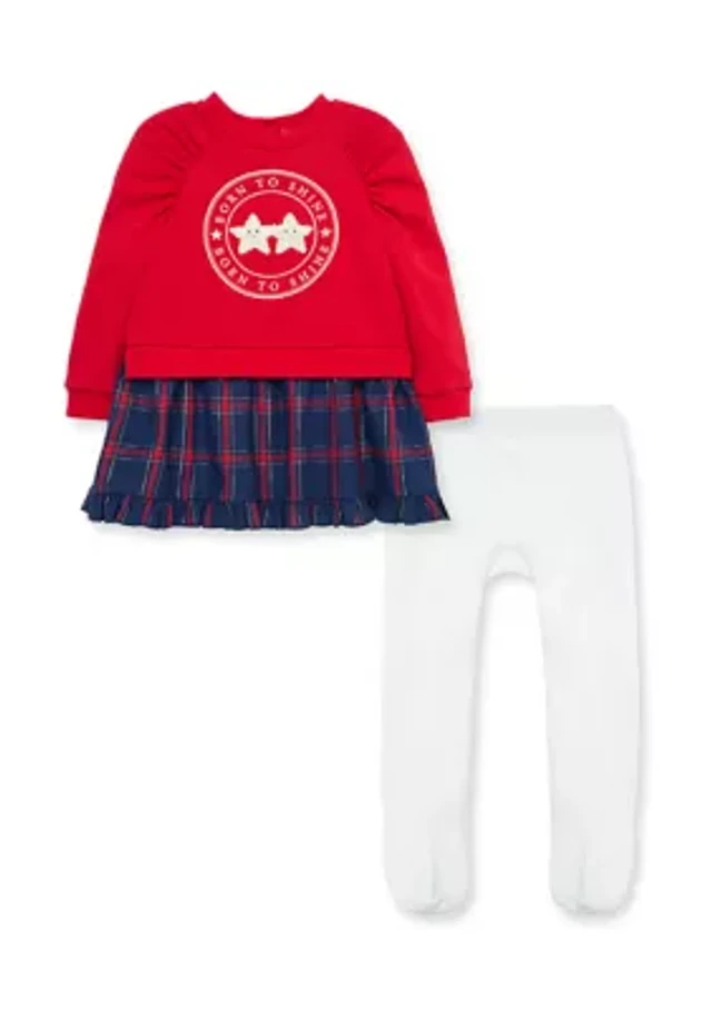 Baby Girls Cotton Bodysuit & Plaid Ponte Dress Set