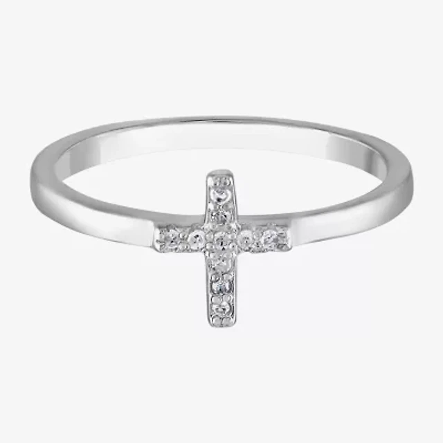 Girls White Diamond Sterling Silver Cross Delicate Cocktail Ring
