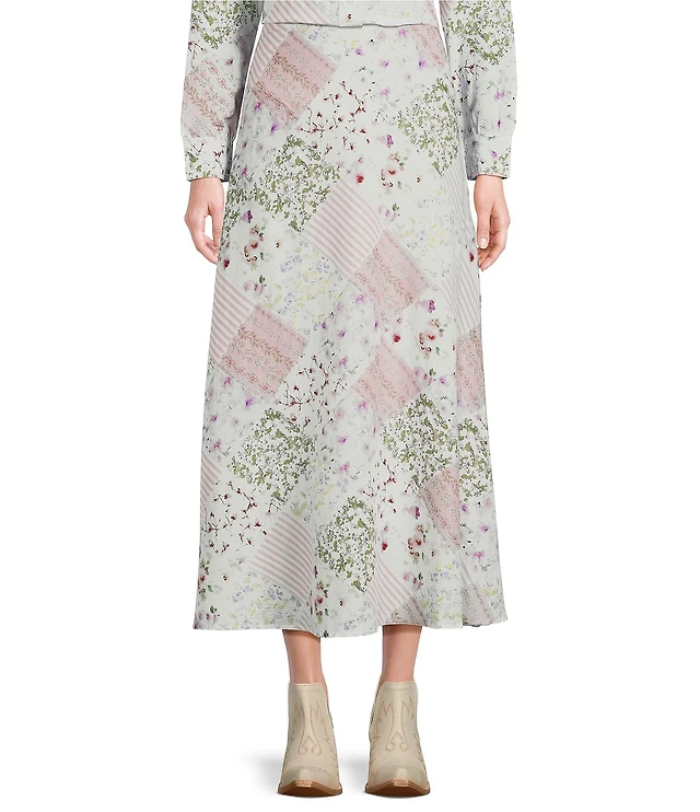CeCe Woven Eyelet Circle A-Line Midi Coordinating Midi Skirt