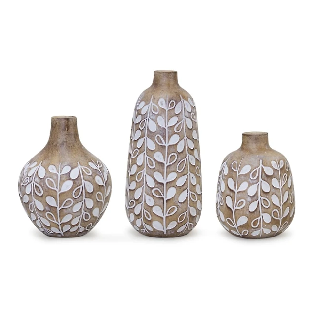 Brown and White Resin Leaf Vases, Set of 3
