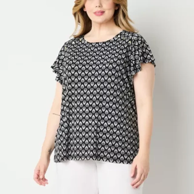 Liz Claiborne Womens Plus Keyhole Neck Short Sleeve Blouse