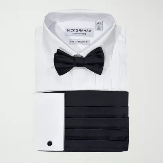 Nick Graham 4-Piece Tuxedo Mens Spread Collar Long Sleeve Stretch Fabric Shirt + Tie Set
