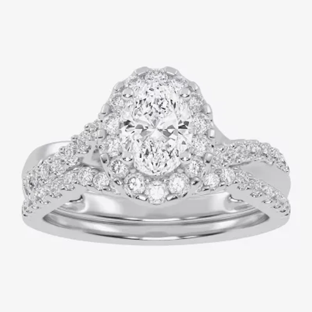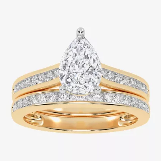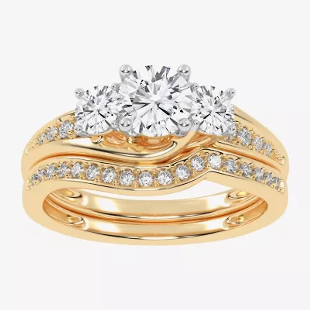 (H-I / Si2-I1) Womens 1 1/2 CT. T.W. Lab Grown White Diamond 10K or 14K Gold Side Stone Bridal Set