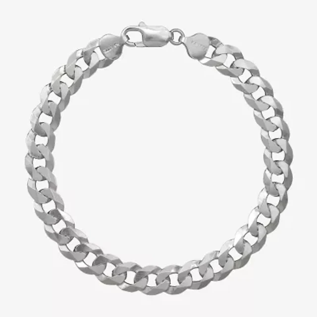 Made in Italy Womens Sterling Silver 7.5 Inch Solid Link Heart Chain Bracelet