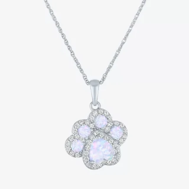 Womens Lab Created White Opal Sterling Silver Butterfly 18 Inch Pendant Necklace