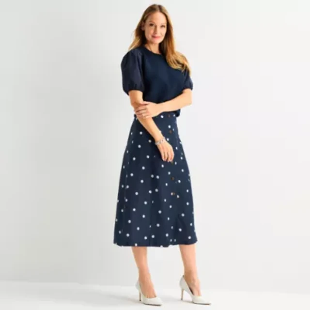 Petite Seamed Linen Cotton Button Midi Skirt