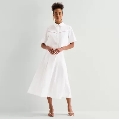 Poplin Bubble Mixed Media Midi Dress