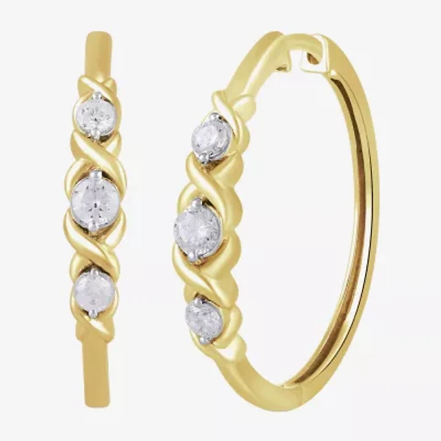 Womens 1/10 CT. T.W. Lab Grown White Diamond 10K Gold 11mm Hoop Earrings
