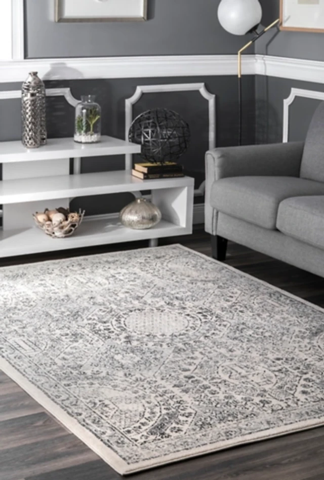 Ivory Raised Diamond Stripes Area Rug, 8x10