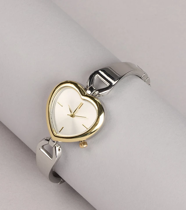 Pearlized Heart Charm Chain Link Stretch Bracelet
