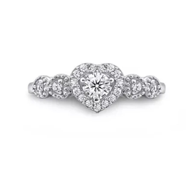 Promise My Love Womens 1/10 CT. T.W. Natural White Diamond Sterling Silver Heart Ring