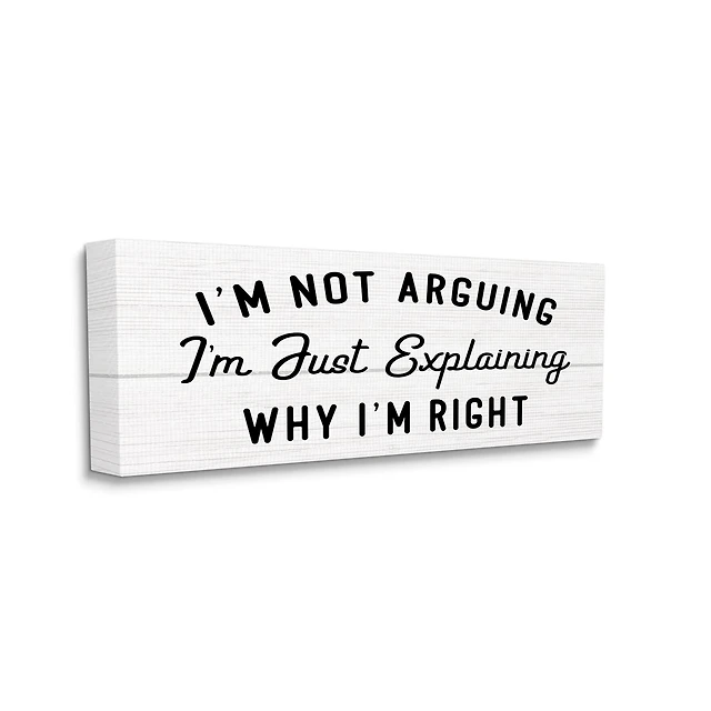 Stupell Industries Not Arguing Explaining Why I'm Right Funny Phrase Canvas Wall Art