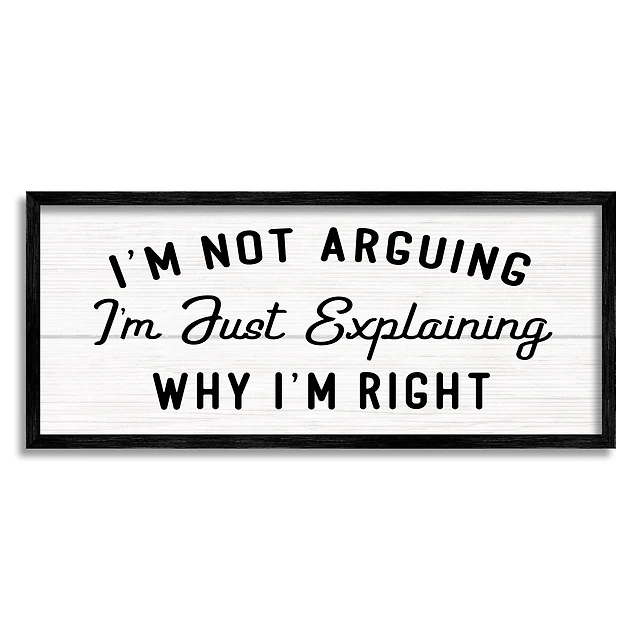 Stupell Industries Not Arguing Explaining Why I'm Right Funny Phrase in Frame Wall Art