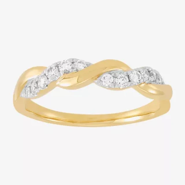 (G-H/I1-12) Womens 1/3 CT. T.W. Lab Grown White Diamond 10K Gold Crossover Cocktail Ring