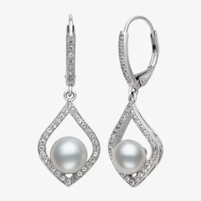 Womens Lab Created Blue Sapphire 14K Gold Over Silver Drop Earrings