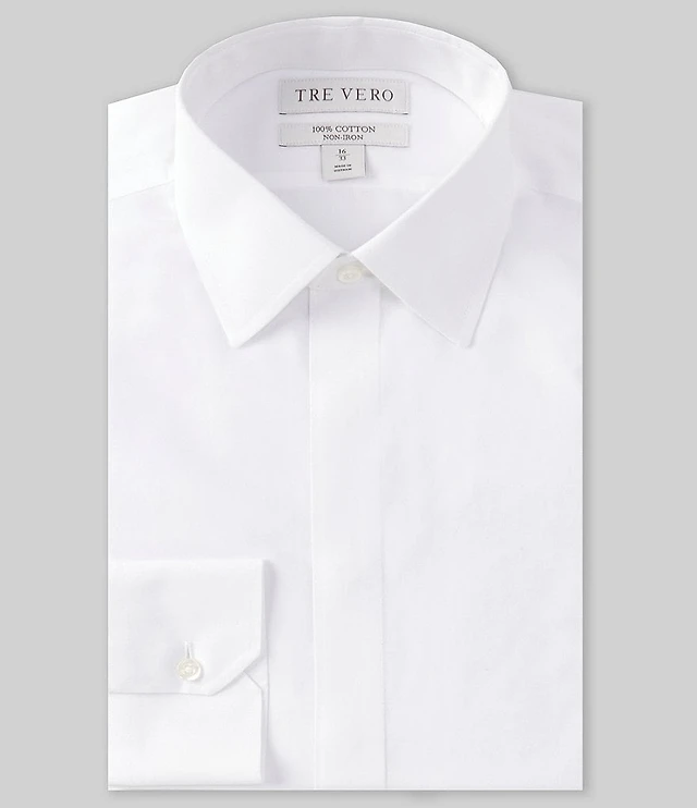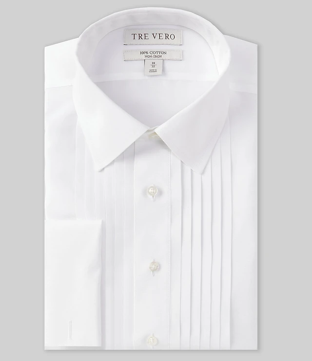 Tre Vero Slim Fit Stretch Spread Collar French Cuff Sateen Tuxedo Dress Shirt