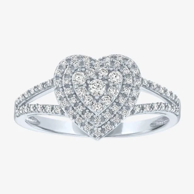 (G-H / Si2-I1) Womens 1/10 CT. T.W. Lab Grown White Diamond Sterling Silver Heart Side Stone Halo Promise Ring