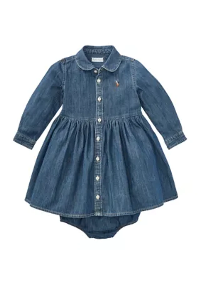 Baby Girls Smocked Cotton Chambray Dress & Bloomer